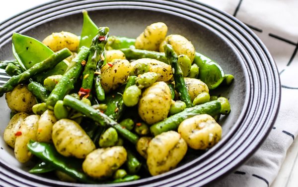 Gnocchi met pesto en lentegroenten